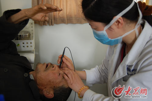 本次愛心活動在平邑引起強烈反響,18日早晨7點多鐘活動尚未開始 ,就有十余名白內障患者在親屬的陪同下等候在銅石鎮衛生院門口,完成登記后,18日下午,山東施爾明眼科醫院的專家開始為患者做術前檢查,包括常規化驗、心電圖、A超、B超、晶體檢測等,身體狀況符合條件的確 定在次日手術。