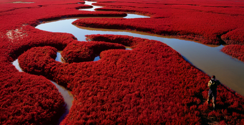 2008年7月3日,全國網(wǎng)絡(luò)媒體記者采訪團來到盤錦。在炫麗的紅海灘上體驗著盤錦的獨特魅力。