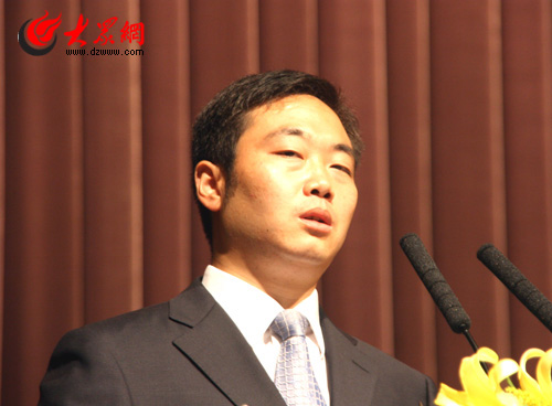大眾網(wǎng)濟(jì)南6月23日訊 今日上午,抗震救災(zāi)英模事跡報告會在山東會堂舉行,報告團(tuán)6名成員報告了他們在抗震救災(zāi)中的感人事跡。圖為映秀小學(xué)教師董雪峰作報告。