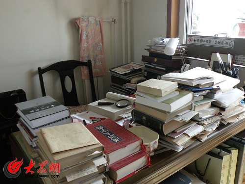 這是記者在中石先生書房用鏡頭記錄下的見聞,或許從我們的照片中,更能解讀出先生的博學與勤奮。圖為歐陽中石在大眾網嘉賓訪談簿上簽名。