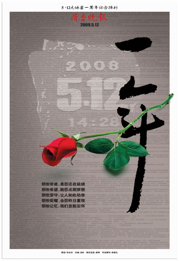 為大力宣傳全國人民弘揚抗震救災精神,重建美好家園的突出成績和精神面貌,全景展現抗震救災和災后重建的偉大歷程,國務院新聞辦公室網絡局和四川省委宣傳部、四川省人民政府新聞辦公室指導包括中國新聞網在內的部分具有新聞登載資質網站共同舉辦“我的5.12”網絡作品大賽。 作品征集日期: 2009年4月28日至6月10日