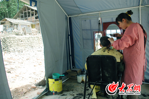 青川騎馬鄉(xiāng)王英在簡易帳篷內(nèi)經(jīng)營理發(fā)店