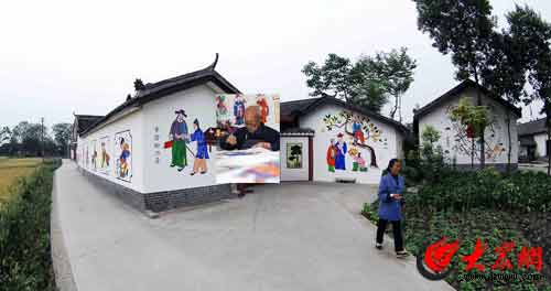 大眾網(wǎng)4月28日訊(特派記者 趙爾印)走進射箭臺村,仿佛走進夢里水鄉(xiāng),在農(nóng)田中錯落有致的民居青瓦挑檐,白色墻體上各種栩栩如生的繪畫在表達著歷史及本地的典故韻律,村民們悠閑地享受著震后繪畫生活,筆下線條明快、清秀,穿越近千年的時光,卻風(fēng)化不盡持久的生命力。