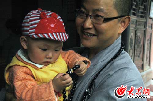 大眾網(wǎng)4月28日訊(特派記者 趙爾。5月13日,什邡市將為地震災(zāi)區(qū)出生在羅漢寺內(nèi)的108名地震寶寶慶生,舉行抓周活動(dòng)。據(jù)了解,去年地震發(fā)生后,什邡保健醫(yī)院被迫將待產(chǎn)孕婦轉(zhuǎn)移到羅漢寺,從5月13日震區(qū)第一位地震寶寶降生在寺廟后,截止到8月7日保健醫(yī)院搬進(jìn)板房,期間共有108名嬰兒降生。羅漢寺住持素全法師認(rèn)為:“新生命代表著希望,他們的到來(lái)給其他人帶來(lái)了歡樂(lè)!庇浾呓諄(lái)到什邡市羅漢寺,對(duì)素全法師進(jìn)行了專訪。