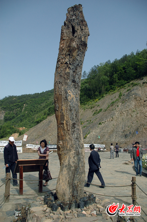 大眾網青川訊(特派記者 趙爾印)去年11月12日,汶川大地震半年祭時,東河口地震遺址公園開園,據了解,這是地震災區首個建成并對外開放的地震遺址公園。在地震遺址內,有兩樣東西,據說是地震發生時,從地底下“迸出來”的,其中有塊已經部分碳化的木頭經有關專家鑒定,距今已有上千年的歷史。