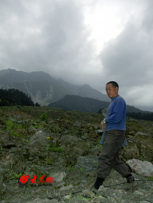 大眾網彭州4月26日訊(特派記者 趙爾印)耐心地等待鏟車、挖掘機等設備清理完堵在路中央的山體滑坡堆積物,采訪團一行終于來到謝家店子村。這里是5.12地震龍門山斷裂帶途經之地。根據當地幸存者的回憶,全村三分之一共48戶居民頃刻間被大地吞沒,從地下迸出來的碎石和渣土掩埋了民居和前來觀光旅游地部分游人。48戶村民當時只有祖孫二人跑了出來,另有一人被救。