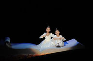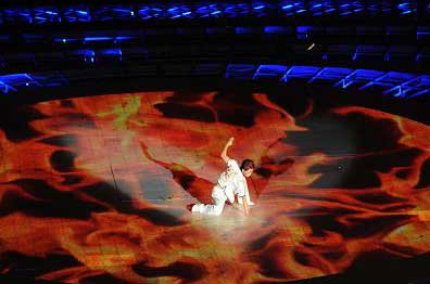 伴隨著悠揚的音樂,線陣中兩只“藍色精靈”表演著各種柔美的動作,從40米高空中順著僅有的一條絲綢緩緩下落,...