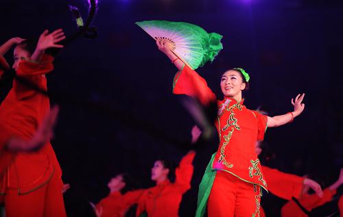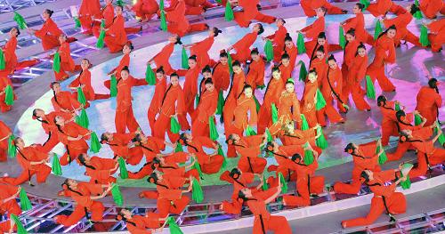 10月28日,第十一屆全國運動會閉幕式在山東濟南舉行。這是閉幕式上的舞蹈表演《飛騰》。新華社記者范長國攝