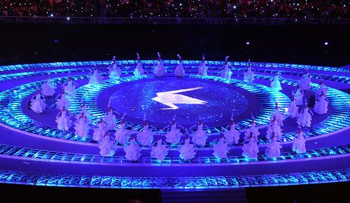 10月28日,第十一屆全國運動會閉幕式在山東濟南舉行。這是閉幕式表演的第三篇章《星空》。新華社記者范長國攝