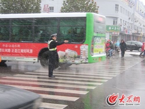 德州交警冒雪執(zhí)勤 王洪嶺攝