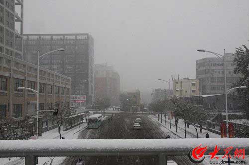 一夜的雪讓路上車少了很多