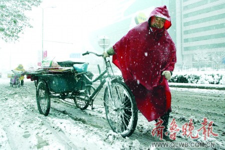 大雪來了,遍布于城市各個角落的小商小販們,為了生計不得不頂風冒雪、腳踏泥水,賣早點、賣菜、賣報、賣地瓜……他們的勤奮,雖為謀利卻讓人敬佩,他們的堅守,雖不起眼卻讓人動容。他們,讓這個充滿寒意的城市多了些生機和希望。