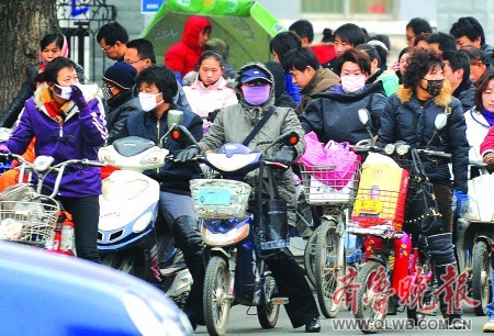 冬日來臨,濟南不少市民戴上了口罩,專家稱戴口罩也是預防甲流的有效方法之一。 本報記者 左慶 攝 |