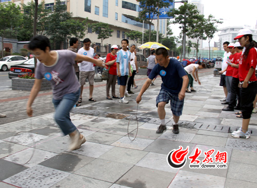 大眾網(wǎng)濟(jì)南7月11日訊 (大眾網(wǎng)-生活日?qǐng)?bào)聯(lián)合報(bào)道組 記者 趙爾印)今天上午,雨后的濟(jì)南氣候宜人,歷下區(qū)縣西巷泉樂(lè)坊商業(yè)街廣場(chǎng)上,“安利紐崔萊,全運(yùn)動(dòng)起來(lái)”社區(qū)運(yùn)動(dòng)嘉年華活動(dòng)首戰(zhàn)比賽來(lái)開帷幕,滾鐵環(huán)、抽老牛、跳房子、投沙包等老游戲深深吸引著老老少少社區(qū)運(yùn)動(dòng)愛(ài)好者。經(jīng)過(guò)輕松而有序的比賽,各游戲項(xiàng)目角逐出前三名。不少市民雖然沒(méi)有拿到獎(jiǎng),卻也很高興:“全民全運(yùn),全運(yùn)動(dòng)起來(lái),社區(qū)運(yùn)動(dòng)嘉年華要起好這個(gè)頭。”