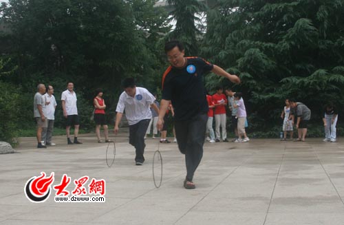 大眾網(wǎng)濟(jì)南7月18日訊(大眾網(wǎng)-生活日?qǐng)?bào)聯(lián)合報(bào)道組 記者 趙新婷 司君波 燕雨 實(shí)習(xí)生 王磊)“很高興今天能夠衛(wèi)冕冠軍,下次的社區(qū)嘉年華我還要來(lái),來(lái)當(dāng)志愿者。”李旭澤樂(lè)呵呵的說(shuō)。上周的比賽,李旭澤和妻子分獲滾鐵圈和踢毽子的冠軍,今天,李旭澤帶著女兒又早早的來(lái)到比賽現(xiàn)場(chǎng),經(jīng)過(guò)激烈的比賽,李旭澤成功衛(wèi)冕滾鐵環(huán)的冠軍,賽后,李旭澤高興的告訴記者,下次活動(dòng),他要報(bào)名加入志愿者,“這兩次都是大家為我服務(wù),下次我為大家服務(wù)。”