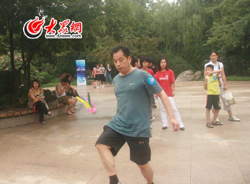 踢起毽子來(lái),男士也毫不遜色