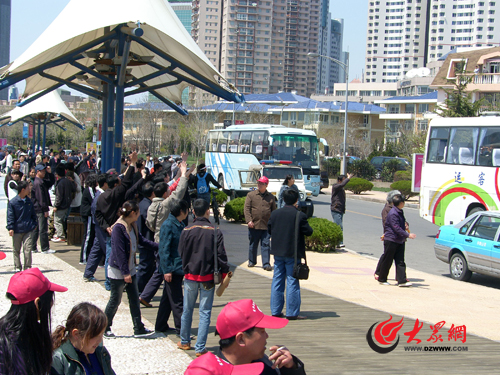當(dāng)各國海軍演奏結(jié)束乘大巴車離開時,大批觀眾自發(fā)地守在路口向他們揮手送別。