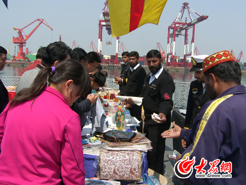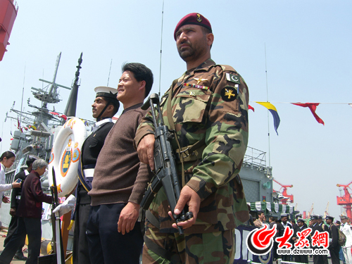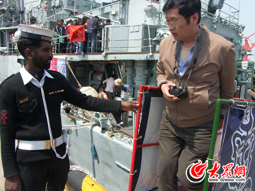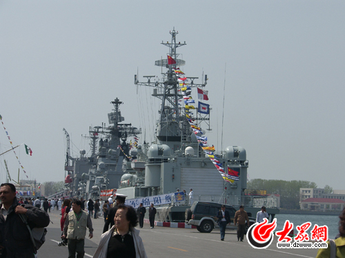 大眾網(wǎng)青島4月22日訊(特派記者 馮煒程)22日上午,在青島大港7號碼頭,即將參加明日閱兵的各國軍艦向青島市民開放,圖為市民參觀軍艦。