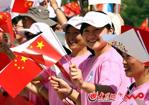 觀看火炬接力的觀眾。 王鴻光攝