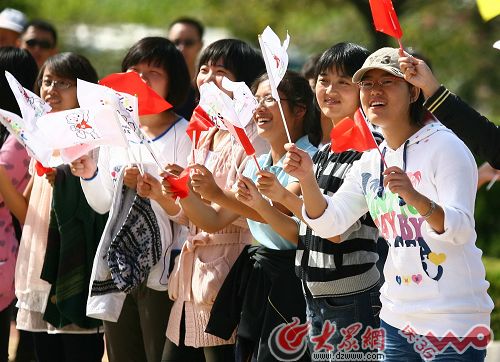 9月21日,全運火炬?zhèn)鬟f第三站在我省海濱城市煙臺市體育公園體育場舉行,有90名火炬手參加了45棒的傳遞,行程約3公里,有3萬市民觀看了火炬?zhèn)鬟f。圖為市民觀看火炬?zhèn)鬟f。