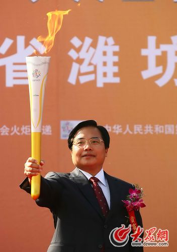 濰坊市委書(shū)記張新起展示火炬。