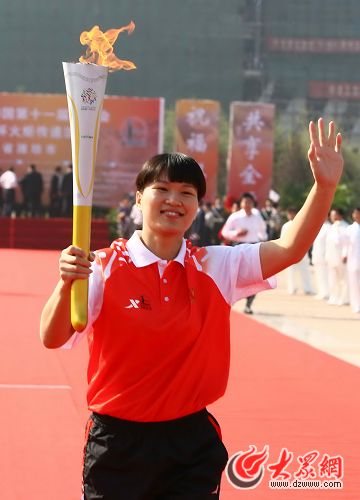 大眾網(wǎng)濰坊9月22日訊 今天,一個(gè)陽(yáng)光明媚的金秋時(shí)節(jié),濰坊市迎來(lái)了全運(yùn)火炬,這也是火炬?zhèn)鬟f山東省第四站。上午九點(diǎn),啟動(dòng)儀式在濰坊市人民廣場(chǎng)舉行,有90名火炬手參加了火炬?zhèn)鬟f,傳遞路線(xiàn)主要在勝利街進(jìn)行。第一棒火炬手是奧運(yùn)冠軍林偉寧,有近10萬(wàn)市民在道路兩側(cè)夾道歡迎火炬手,為他們搖旗吶喊。