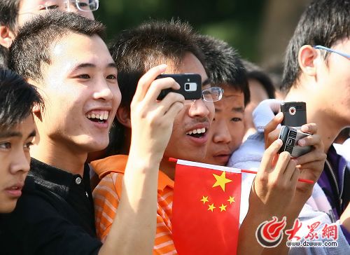 道路兩側(cè)熱情的市民。