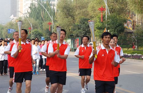 8時許,一名火種護(hù)衛(wèi)者從火種燈中取出火種,點燃了青海省省長宋秀巖手中的全運會火炬。全場掌聲雷動,鼓樂喧天。緊接著,火炬從宋秀巖手中被依次傳遞給青海省體育局局長馮建平、青海省著名自行車運動員馬海軍。隨后,馬海軍依次點燃了其他四位火炬手的火炬。在青海省省委書記強(qiáng)衛(wèi)宣布火炬?zhèn)鬟f活動正式開始后,五名火炬手高舉圣火與五名護(hù)跑手一起,帶領(lǐng)由青海省12家單位組成的12個護(hù)跑方隊繞新寧廣場一周,激情奔跑。最后,儀式在歡樂、熱烈的氣氛中結(jié)束。