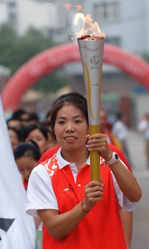 9月8日,安徽運(yùn)動(dòng)員代表陳亞玲手持火炬?zhèn)鬟f。