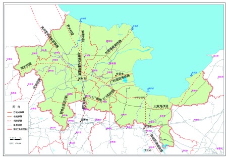黃河三角洲高效生態經濟區鐵路規劃示意圖。 |