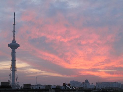 朝霞中的勝利油田電視塔