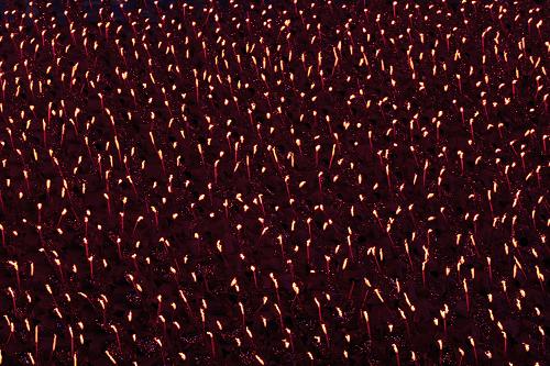 開幕式上5000人心手相傳采自泰山之巔的“國泰民安”之火。