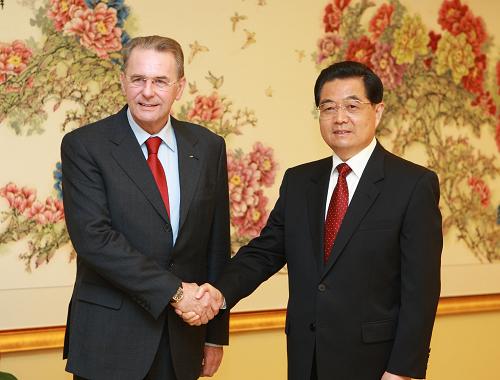 胡錦濤歡迎羅格出席中華人民共和國第十一屆運動會,對他連任國際奧委會主席表示祝賀。