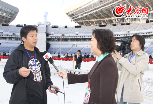 開(kāi)幕式威亞總設(shè)計(jì)徐龍濤在奧體中心內(nèi)接受記者專(zhuān)訪,詳解開(kāi)幕式威亞設(shè)計(jì)。