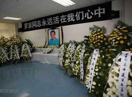 羅京夫人劉繼紅淚流滿面、悲痛欲絕,在兒子羅疏桐的攙扶下走出靈堂,康輝賀紅梅等央視名嘴也不忍與好
