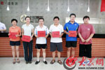 山東省委宣傳部辦公室主任紀濤為獲獎選手頒獎