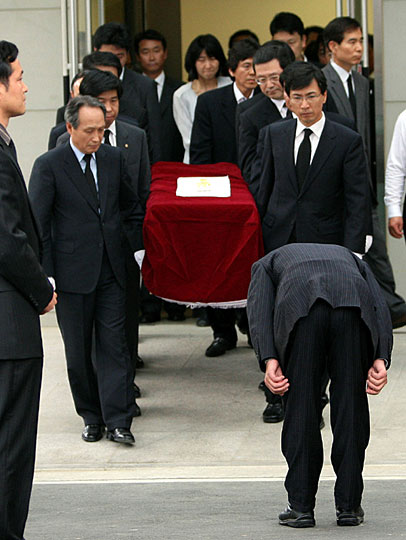5月23日,今晨跳崖身亡的韓國前總統盧武鉉的遺體運往他的家鄉峰下村。