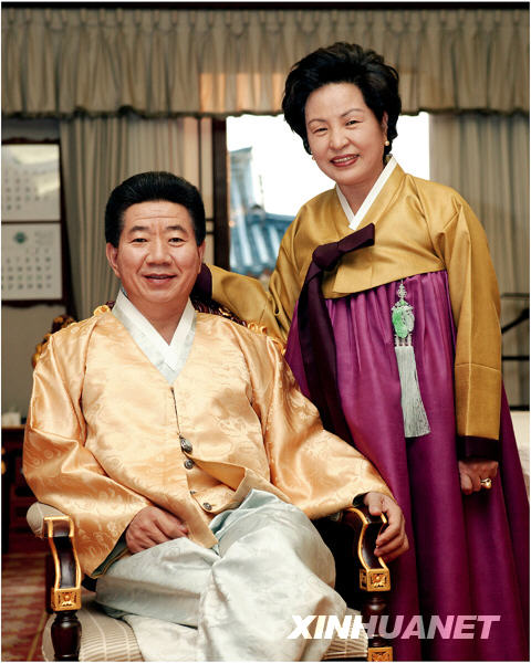 這是2003年12月28日,韓國前總統盧武鉉和夫人權良淑在首爾總統官邸留影。