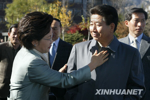 這是2003年11月16日,韓國前總統盧武鉉和夫人權良淑在首爾景福宮散步時留影。