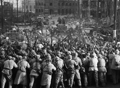 所以在《南京!南京!》里,從主角到那一張張沉默的中國(guó)人的臉,我特別想讓觀眾能夠去凝視他們一次。從攝影、美術(shù)、化妝到服裝等部門,在對(duì)待群眾演員的造型再現(xiàn)上,給予了他們和主演一樣的對(duì)待,他們的服裝其實(shí)和主演一樣考究,有100套衣服從做工造價(jià)等方面和主演是一樣的。每次在現(xiàn)場(chǎng),我們都要按照歷史照片在一千多的群眾演員里仔細(xì)去挑臉,挑我們認(rèn)可的中國(guó)人的臉,每次都經(jīng)持續(xù)兩三個(gè)小時(shí)。我們很幸運(yùn),因?yàn)樵跂|北拍的時(shí)候,武警派出了大批部隊(duì)支援拍攝,那些小伙子都來(lái)自農(nóng)村,他們的臉很多還保持著中國(guó)人的質(zhì)樸、堅(jiān)毅還有那種無(wú)奈,信息非常的豐富,非常的好看。