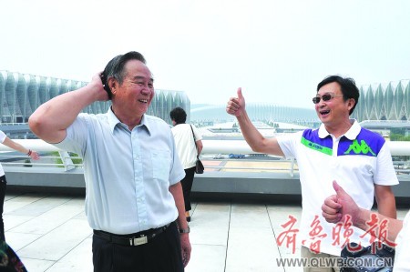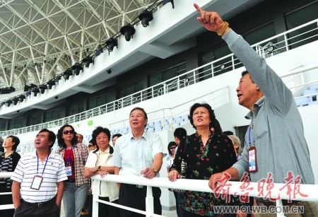 16日上午,濟南奧體中心迎來了一批尊貴的客人——數十位“全運50年體育功勛榜”獲獎者饒有興致地參觀了“東荷”(體育館)和“西柳”(主體育場)。濟南奧體中心雄偉漂亮的建筑和隨處可見的高科技設計,引來大家的交口稱贊。