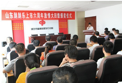 2013年9月16日上午十時,山東省福利彩票發行中心在濟南市齊魯公證處公證員的全程監督下,進行了“山東刮刮樂上市六周年激情大回饋”活動的第一次抽獎,抽中幸運彩友共計500名,其中濰坊市45名。