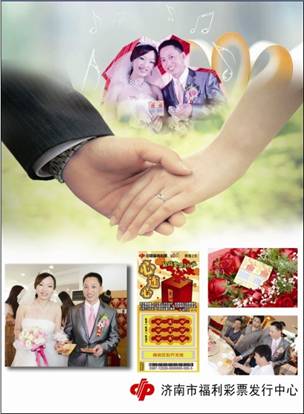 中國人辦喜事就如同過節一樣,不光家里要張燈結彩,還要燃放禮炮,新郎新娘佩戴胸花。而“節大歡喜5”正好將婚禮這種如同過節一般的喜慶通過彩票的方式發揮得淋漓盡致。大紅的底色,爆竹鳴響,兩個如同年畫娃娃一般可愛的孩子隨著焰火的律動打腰鼓、扭秧歌,儼然一副歡天喜地的模樣。仿佛是在為新人的結合表達內心最大的祝福。該彩票面值10元,共有13次中獎機會,頭獎達60萬元,共有兩種玩法,一種可以簡單概括為“對數字”,只要“我的號碼”與“中獎號碼”相同,就可以贏得數字下方的獎金,中獎獎金兼中兼得;另一種可以理解為“掛燈籠”,只要刮出燈籠圖幅就可以中100元。
