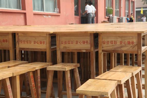 圖為濟(jì)寧市福彩中心為汶上縣寅寺鎮(zhèn)栓莊小學(xué)捐贈(zèng)的300套課桌凳