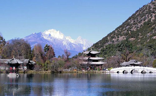 聽說行程中還有“玉龍雪山”,大家都很興奮,雖然我們生活在北方,冬天的山上能看到白雪覆蓋的景色,但這是在四季如春的云南,也居然能看被白雪銀裝素裹的雪山,在一天之內經歷兩個季節,還真是一件另人興奮的事。我們乘環保大巴駛進雪山景區,來到白水河景點,這白水河源于玉龍雪山甘泉,水質清澈透底,甘泉源源不斷地養育著祖祖輩輩的麗江人,洗滌著古鎮的青石板路面。導游告訴我們,玉龍雪山的主峰海拔為5596米,在納西族人的心目中是一座神山。因為玉龍雪山供給著麗江充裕的水資源,沒有玉龍雪山,就沒有納西族生存的這個空間,也就沒有麗江古城的韻味。