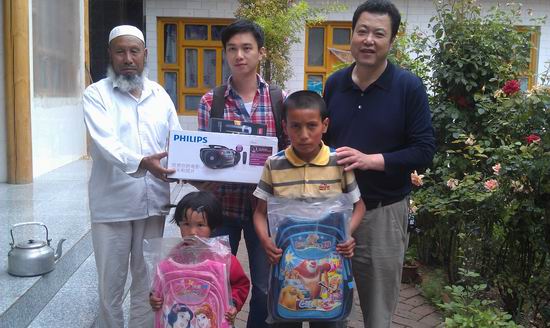 7月6日下午,深圳福彩中心、青海福彩中心及媒體代表一行來循化縣查汗都斯鄉看望來深建設者的家人,為他們帶去了錄音機、保溫杯、書包等禮物。馬國祥夫妻倆來深打工已經4年多了,除了每個月寄錢回家,一次也沒有回去,家里有兩個小孩,兒子10歲,女兒5歲半,由爺爺奶奶照顧。當深圳福彩中心工作人員播放馬國祥在深圳工作的視頻及牽掛表白時,老人眼睛濕潤了,兒子很害羞,在記憶中搜索著父親的形象,女兒出生沒多久父親就不在身邊了,所以對父親幾乎沒有印象,一家人圍坐在電腦旁,眼睛緊緊盯著至親的人的畫面,看了一遍又一遍,思念之情寫滿臉上。當記者問馬國祥的兒子有什么話想對父母說時,小男孩一臉靦腆,怯怯地說:“爸爸媽媽,我想你們,快回來!