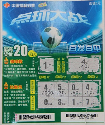 11月13日,聊城市又有投注站發現涂改后的“百發百中”兌獎票,已有投注站上當受騙。據被騙投注站業主反映,當天一位20歲左右的男子購買了幾張“百發百中”,當場刮票,刮了幾張后就說中出1000元獎金。由于投注站內購彩人比較多,業主沒有仔細檢查中獎彩票,就兌付給了他獎金。等拿到“刮刮樂”中心站用銷售終端兌獎時,卻顯示該票未中獎。經過工作人員的仔細辨認,才發現這是一張涂改過的未中獎票。