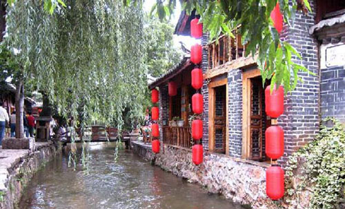 第二天,我們到了有“艷遇之都”美譽的麗江,在沒下車之前,導游就告訴我們,到了這個“艷遇之都”的麗江,尤其是麗江古城的大街小巷中酒吧里,男士尤其是戴著眼鏡的男士都會成為“艷遇”的對像,所以“英雄救美人”在這里就變成了“美人救英雄”。在大家一片笑聲中,我們開始游覽麗江的美景。快樂的走進古城,逛街是永恒的主題,在這些各種特色的小店里,可能有你一見情鐘的一幅畫、一雙麗江大皮靴;還可能有你從來沒有見過的東巴木刻和各種木制的小飾品。沿著小巷中的小橋流水,我們不經意間走進了酒吧一條街,一排排紅色的小燈籠掛在古樸的小木屋外,一陣陣悅耳的民族小曲從一間間小木屋中傳出、一個個穿著民族服飾的“胖金哥”和“胖金妹”們進進出出……不經意間,你就被淹沒在異國的情調之中。