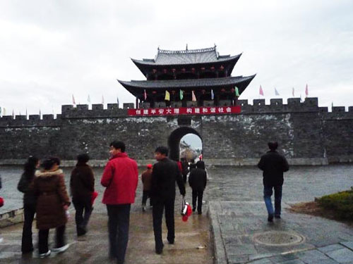 昆明下飛機后,南國氣息撲面而來。當地的導游用一種特別的方式歡迎我們——送給我們每人一支粉紅色的玫瑰花,因為是到了昆明春城了,昆明的誘人之處就是“無處不飛花”嘛。我們到達第一站大理的時候,已經是萬家燈火的時候,下了車的第一反映就是“高原反應”。人和物品都有反應,呵呵,人是頭痛、心跳的厲害,而化妝品的反應就是類似眼霜之類的物體輕易擠不出來,用勁一擠,就擠出來一堆。第二天一早七點鐘用餐后,七點半開始逛大理古城,出來一看,感覺怪怪的——在北方早上七點鐘太陽升得挺高了,而在大理,七點半了天才蒙蒙亮,這種狀態開始逛街感覺怪怪的。
