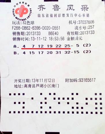 11月12日,福彩雙色球第2013133期開獎中,淄博彩友馮先生在中出575萬大獎的高青縣蘆湖社區南門的37037606號投注站,以機選倍投的方式,一舉拿下了兩注二等獎,攬獲總獎金共計26.6886萬元。